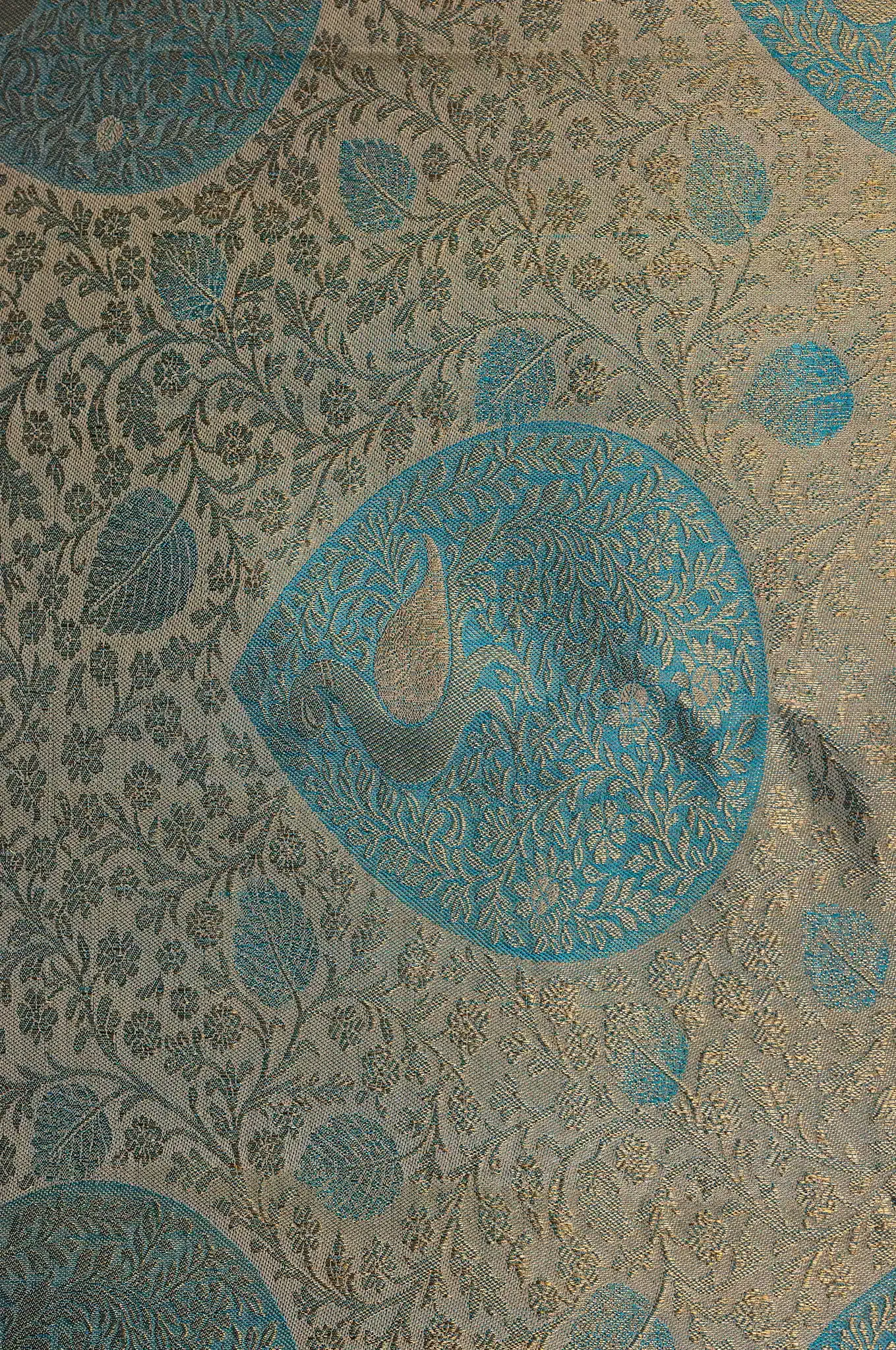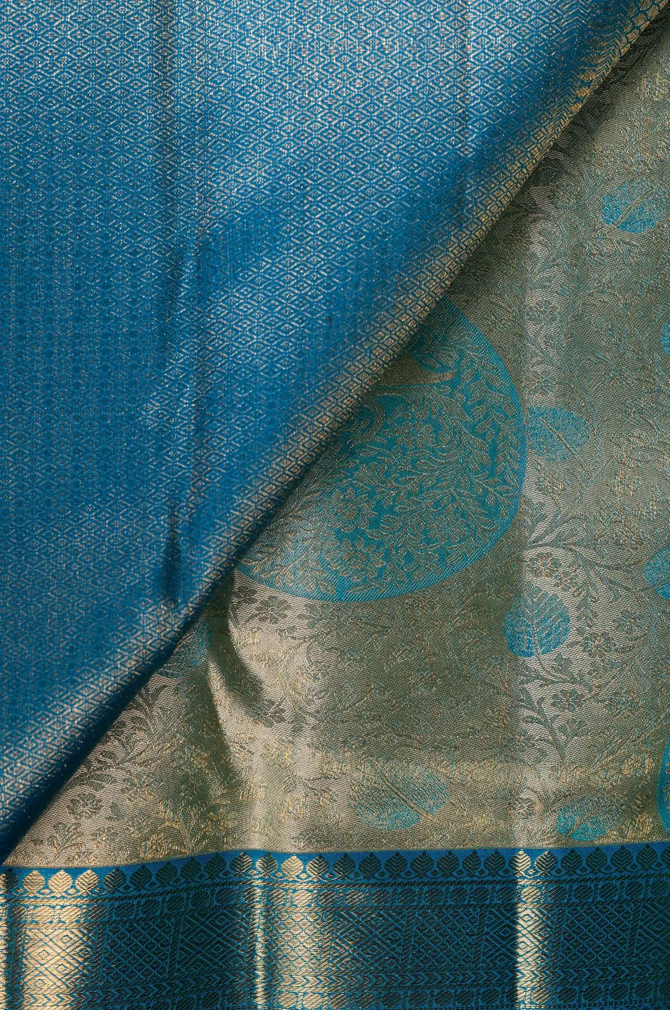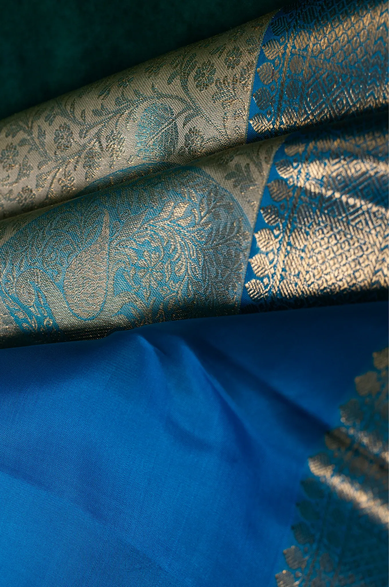 Cream Colour Saree With Sky Blue Border Kanchipuram Silk