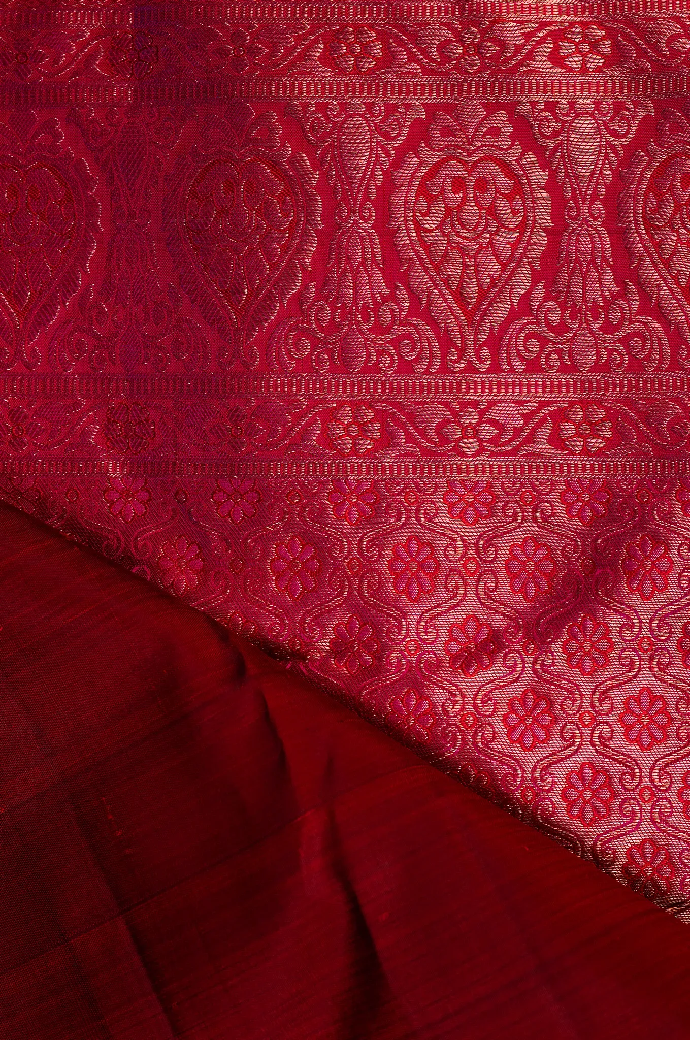 Deep Maroon And Green With Pink Border Arani Silk