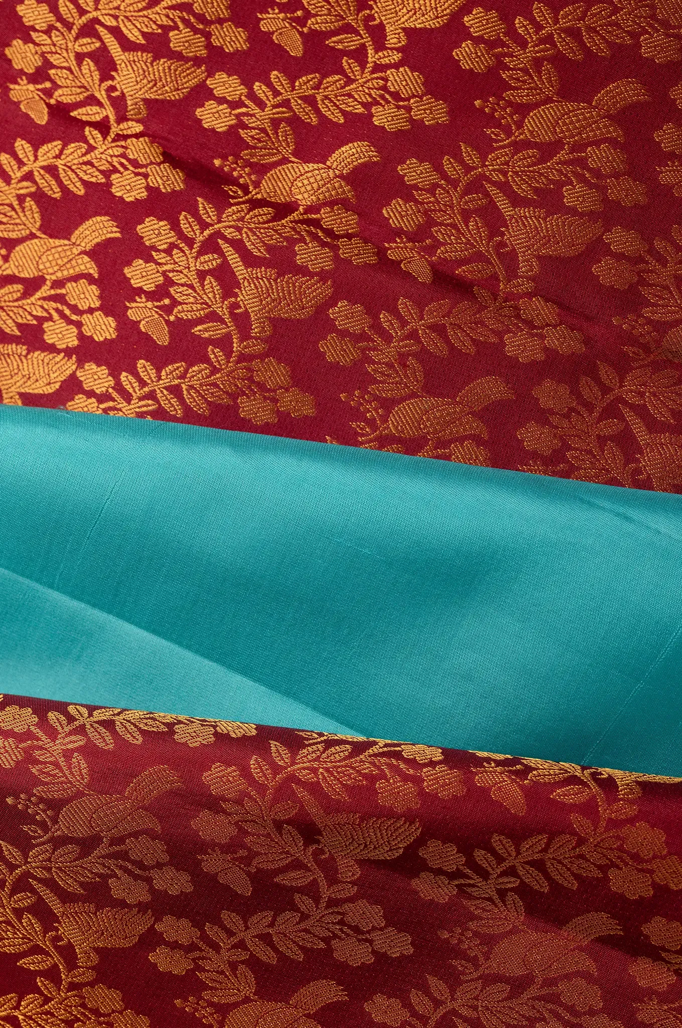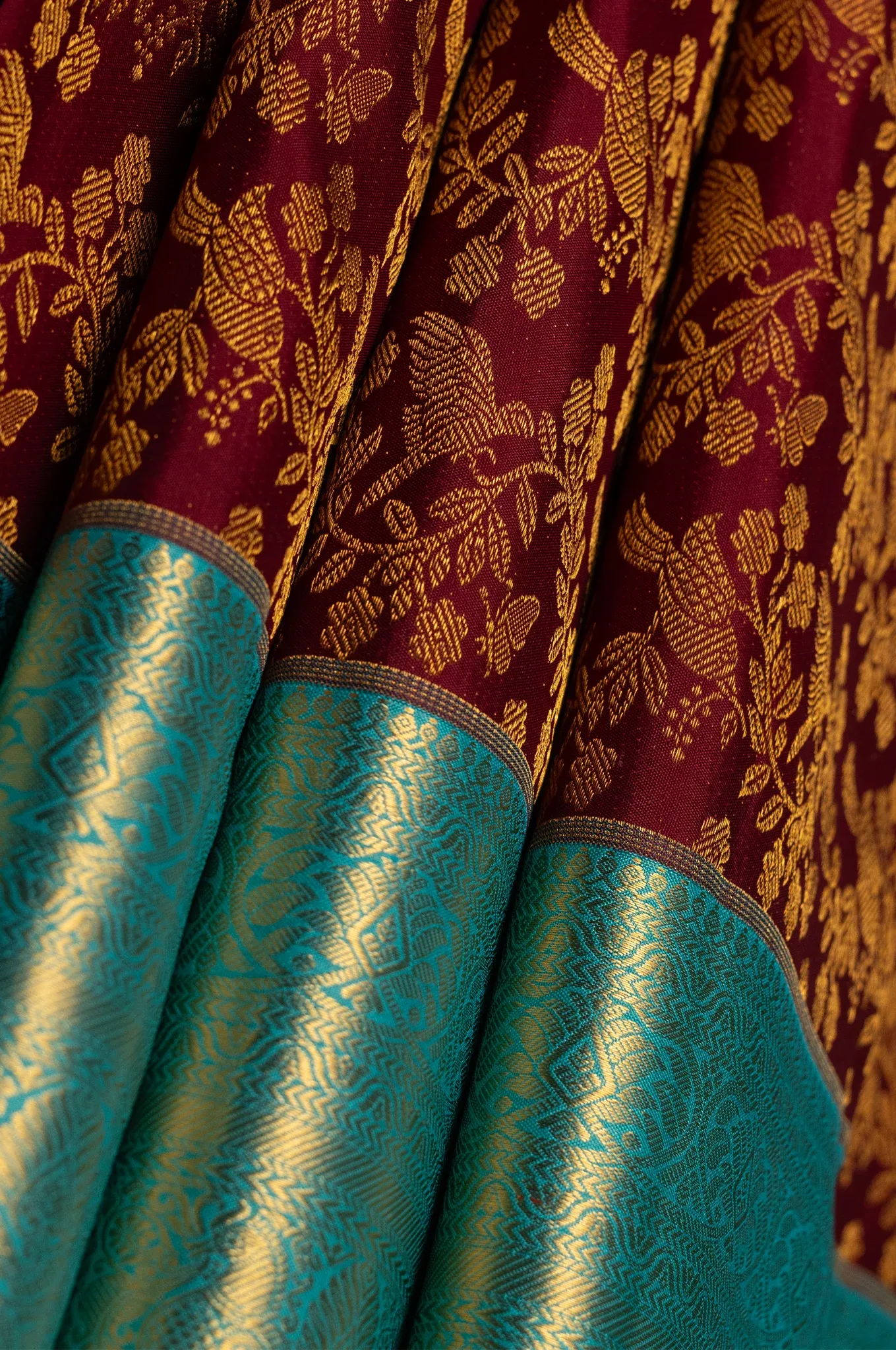 Maroon With Teal Blue Border Kanchipuram Silk