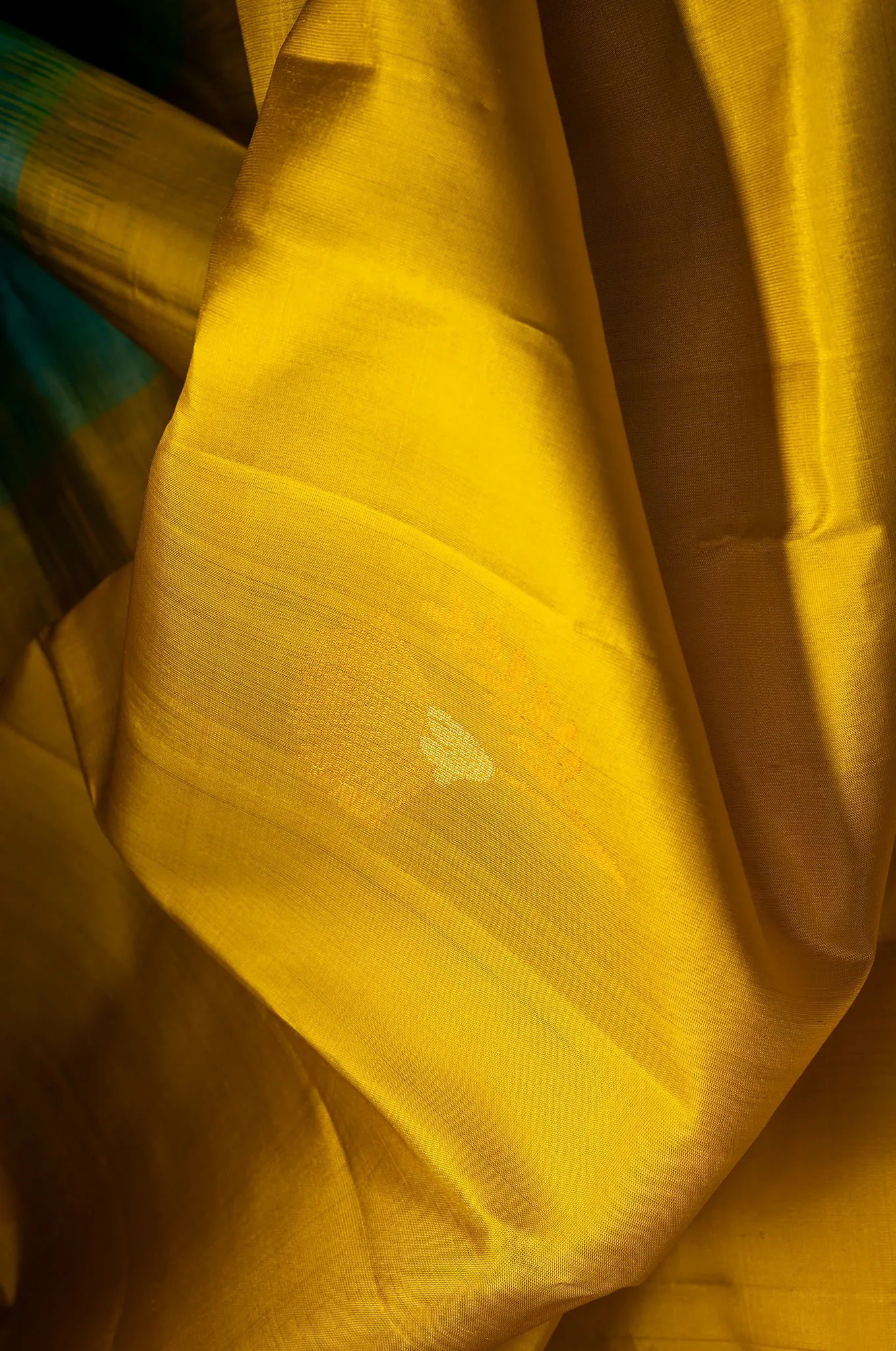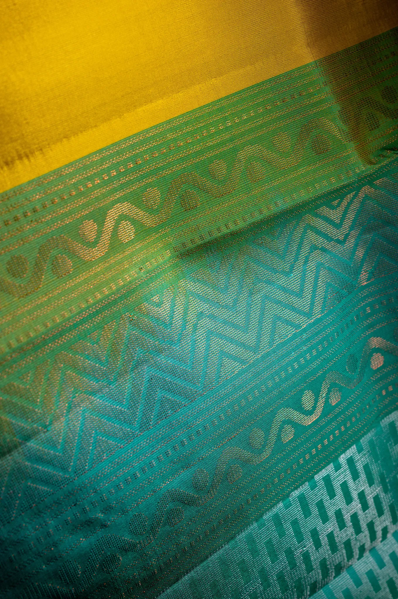 Mayuri Silk Cyber Yellow With Aquamarine Border