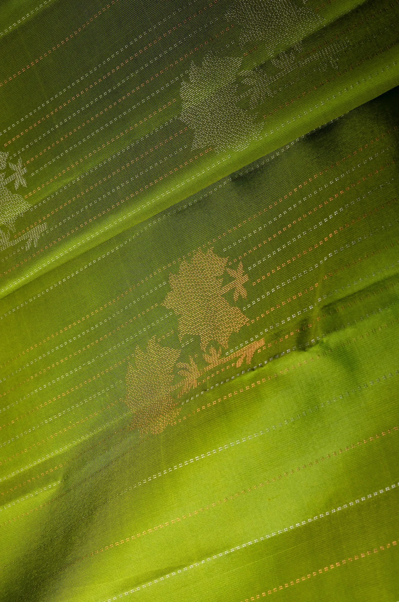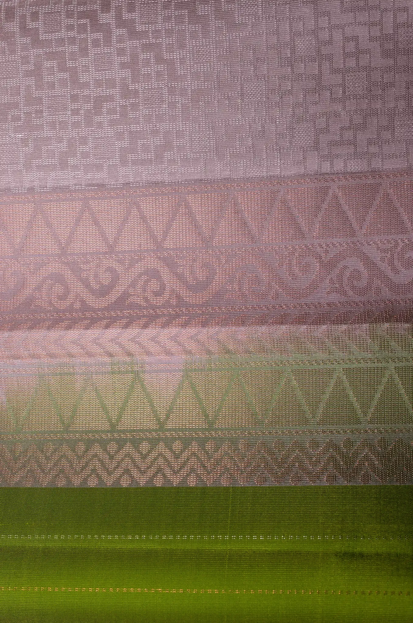 Mayuri Silk Kelly Green And Light Silver And Pink Shade Border
