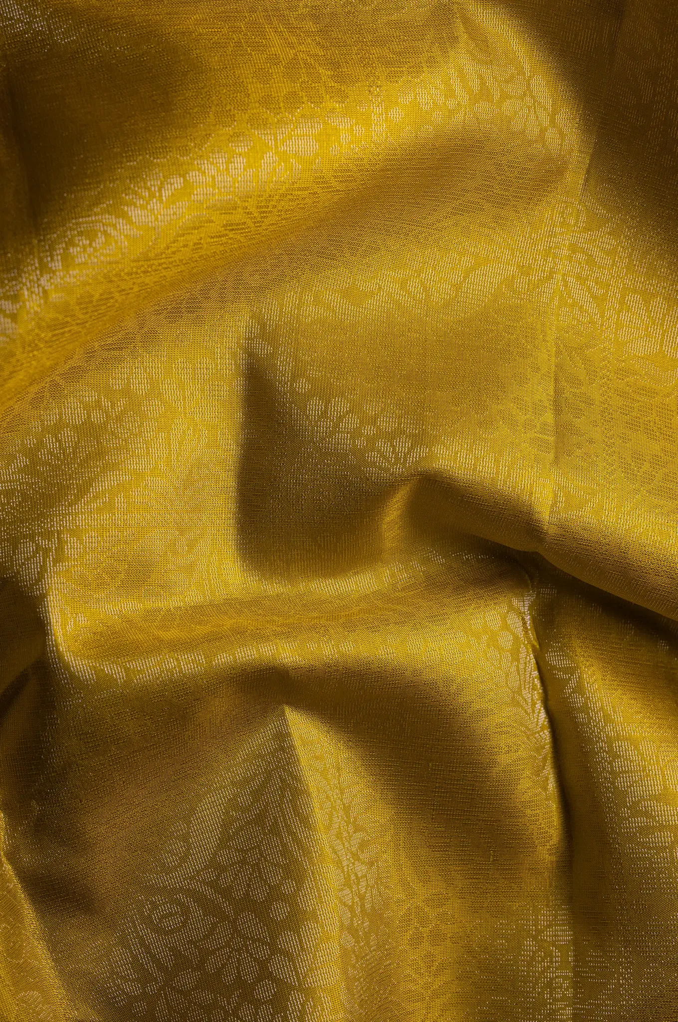 A vibrant bright yellow saree that radiates energy, joy, and festive charm. The body is enriched with intricate jacquard weave patterns, adding depth and a luxurious texture that elevates its overall appeal