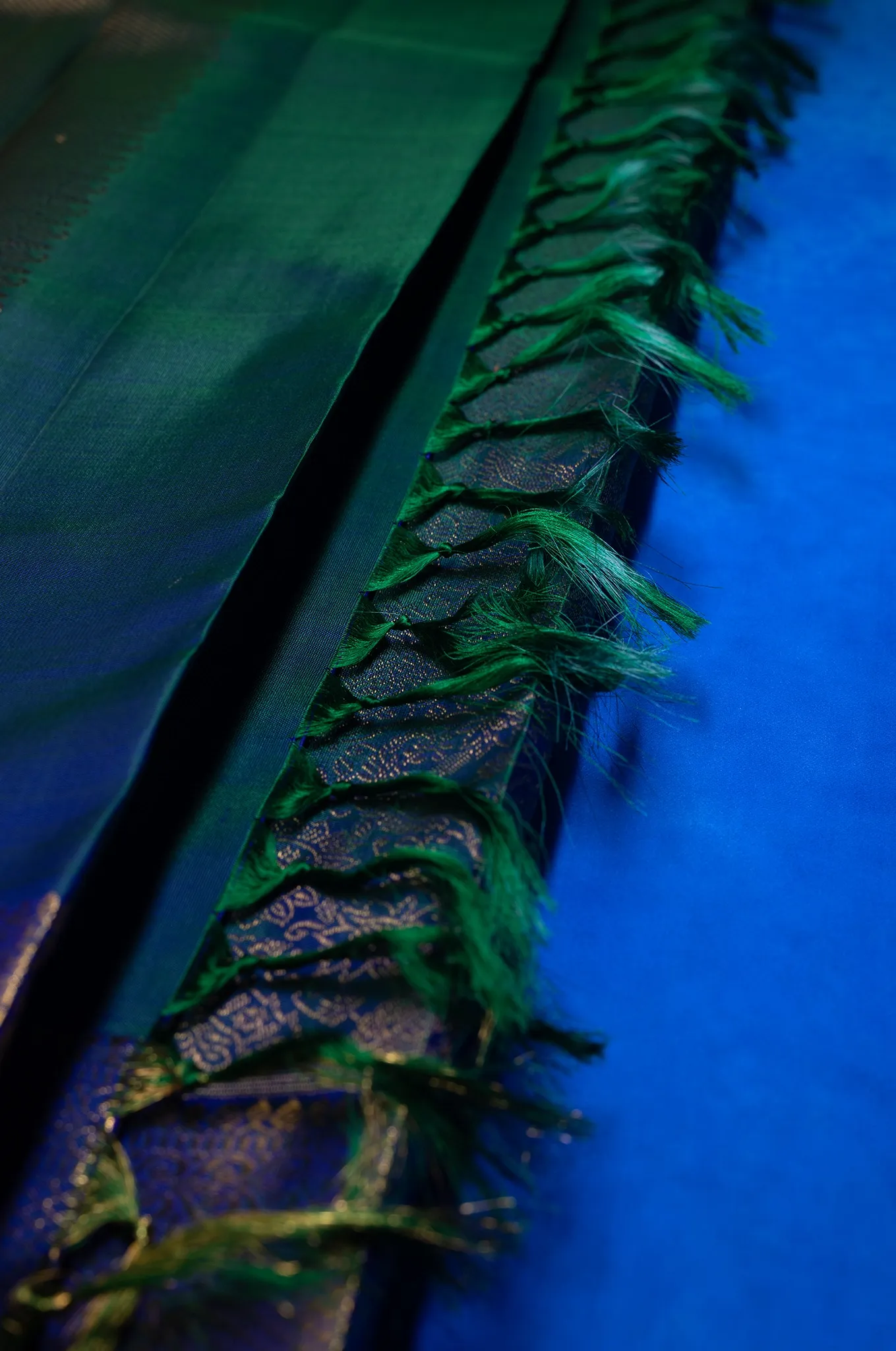 A captivating blend of richness and artistry, this peacock blue self saree radiates elegance with its deep, luminous tone and subtle woven texture. The self-design adds depth and dimension, enhancing the saree’s refined appeal