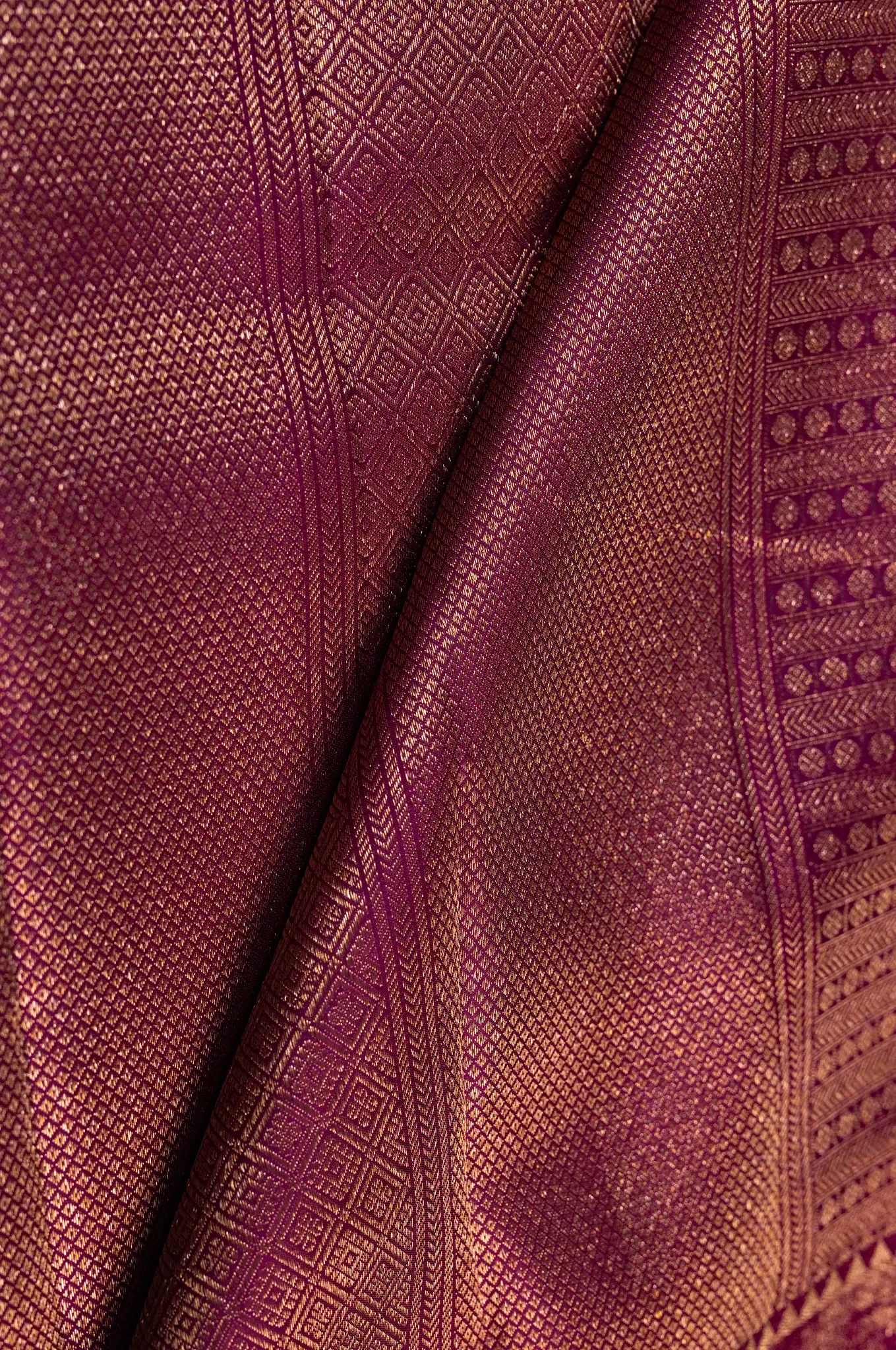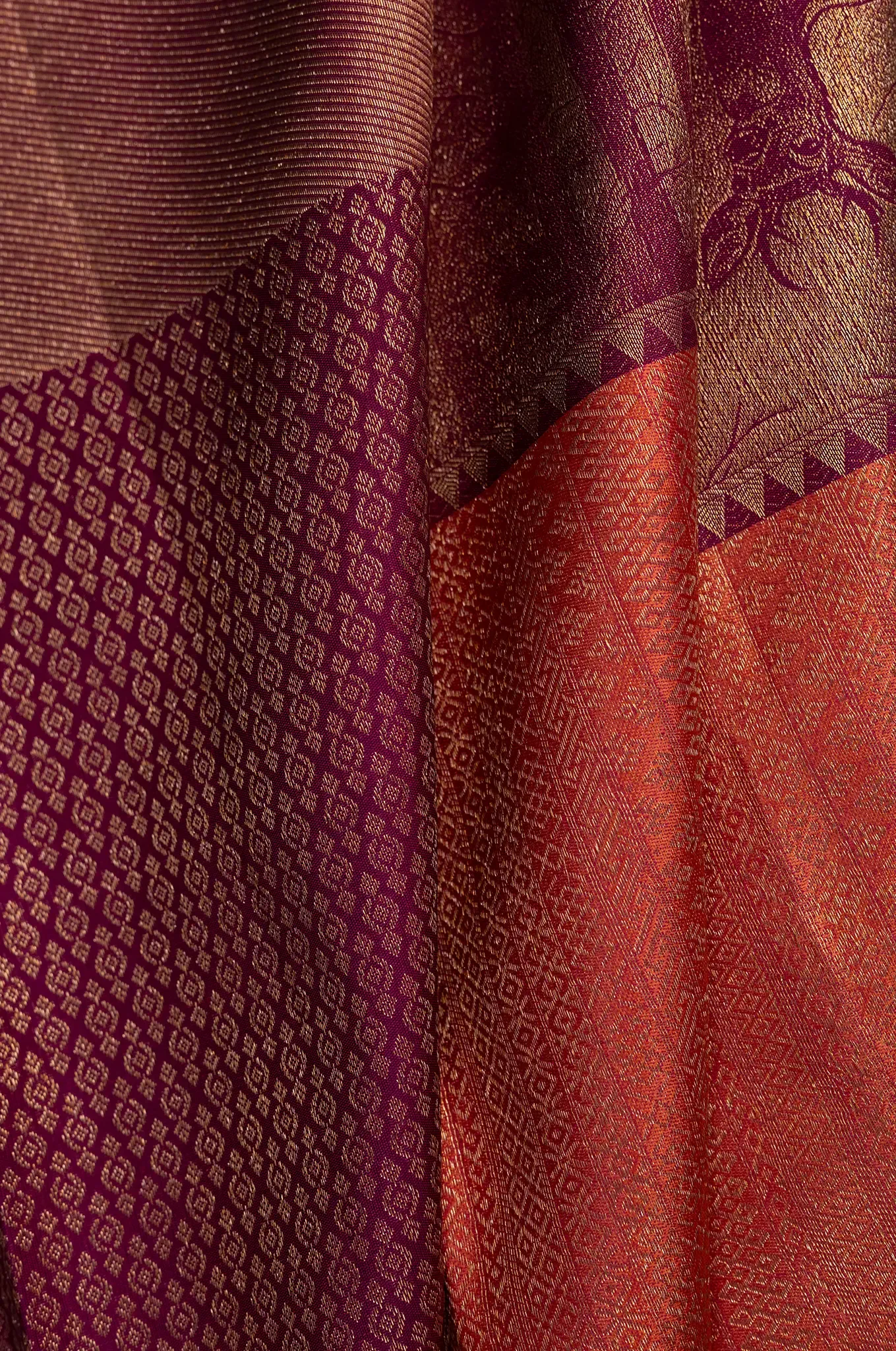 Reddish Orange With Deep Violet Purple Border Kanchipuram Silk