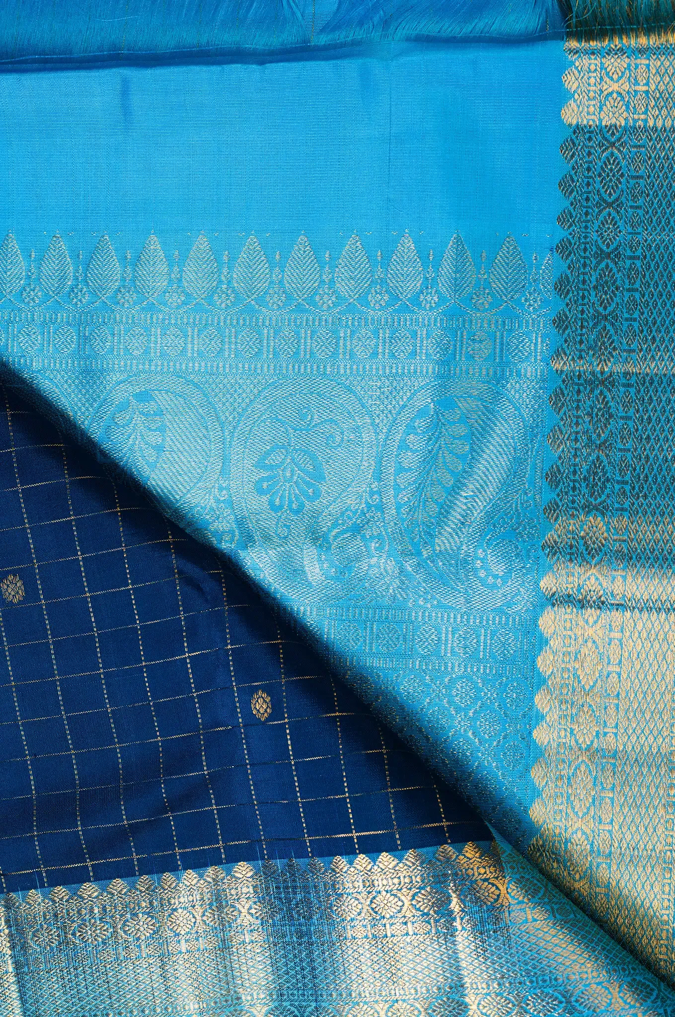 Steel Blue With Sky Blue Border Arani Silk