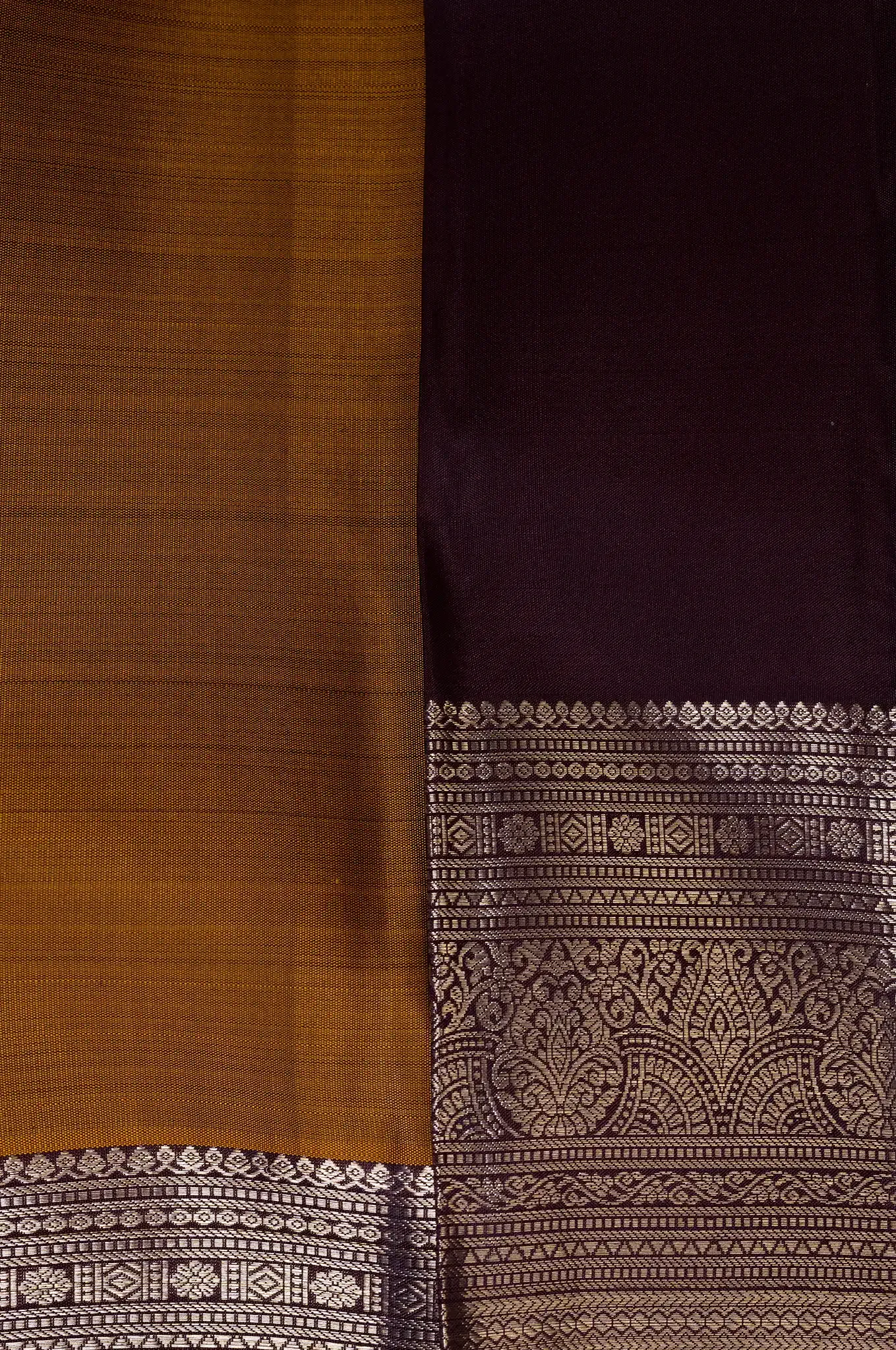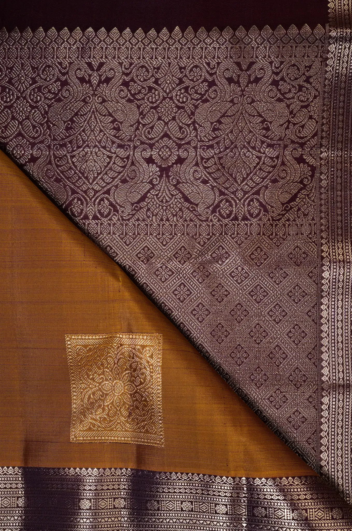 Vibrant Mustard Yellow With Dark Purple Arani Silk
